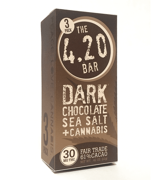 If you want to salivate for some 4.20 cannabis-infused chocolate bars, look no further than the product descriptions at the Evergreen Herbal website. “Decadent milk chocolate blended with crunchy toffee bits,” reads one description. “Milk chocolate with crisped rice and hemp hearts (an excellent source of heart-healthy omegas),” says another. There’s also a dark chocolate with hazelnut 4.20 Bar, along with a Dark Chocolate and Sea Salt flavor. Those who want to keep it simple can go for the straight-up Milk Chocolate 4.20 Bar, or try the CBD Dark Chocolate, which contains 10 milligrams of cannabidiol and 10 milligrams of THC.